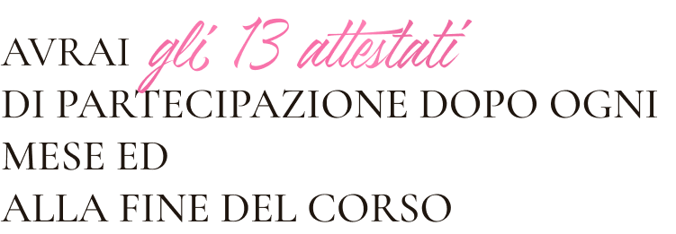 Gli attestato verranno rilasciati dopo ogni mese e gli esami finali.